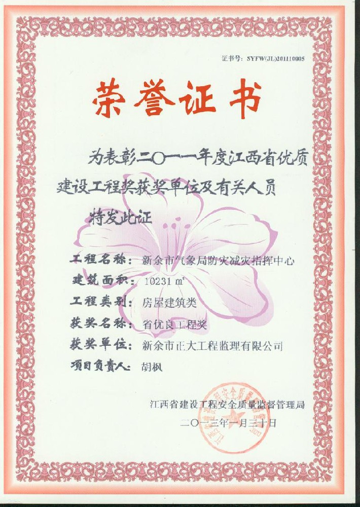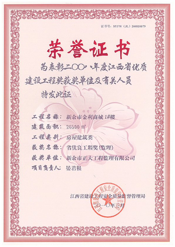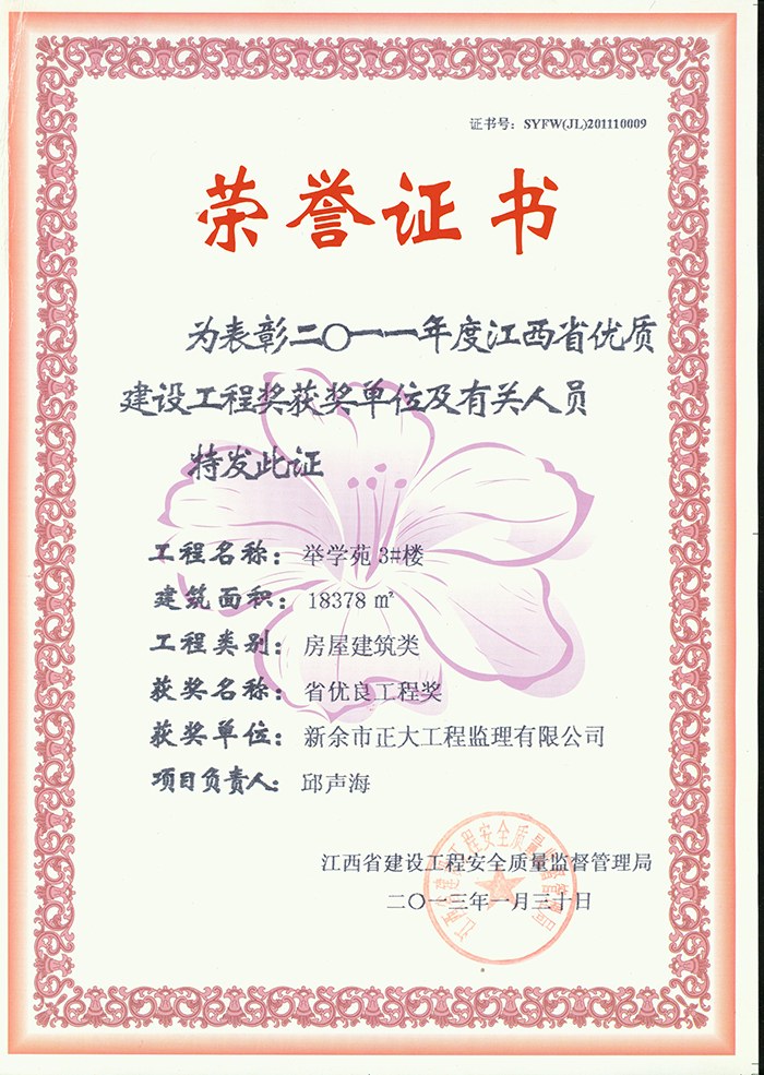 新余市正大工程監(jiān)理有限公司依托新余市建筑設(shè)計(jì)院,于1995年11月成立,是新余市開展監(jiān)理工作最早的監(jiān)理單位,本公司具有建設(shè)部核發(fā)的房屋建筑工程甲級監(jiān)理資質(zhì)、市政公用工程乙級監(jiān)理資質(zhì)、國家人防辦核發(fā)的人防工程監(jiān)理乙級資質(zhì)。我公司始終堅(jiān)持“客戶至上、質(zhì)量第一、信守合同”的經(jīng)營理念;追求“為社會創(chuàng)造價值、為業(yè)主創(chuàng)造效益、為自身謀求發(fā)展”的經(jīng)營宗旨;遵循“守法、誠信、公正、科學(xué)、優(yōu)質(zhì)、高效”的工作原則,以雄厚的技術(shù)力量、完善的管理制度、豐富的監(jiān)理經(jīng)驗(yàn)、良好的企業(yè)信譽(yù)迅速成為我市監(jiān)理行業(yè)的一支新銳力量!